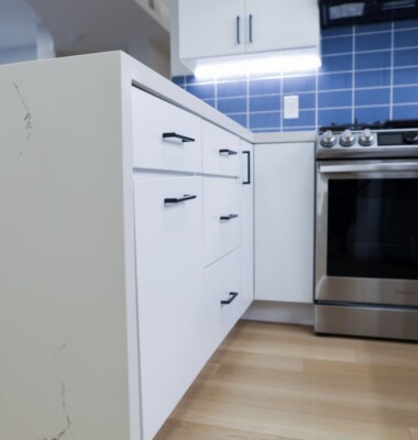 The construction of the Quik Kitchen project is similar in many ways and different in a few. The kitchen project is installed and managed by our team. However, due to the complex nature of the counter tops and cabinetry, our team includes a cabinet installation specialist and a counter top installation specialist.